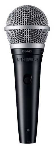 The PGA48 is a professional quality vocal microphone with an updated industrial design that features a black metallic finish and classic silver ball grille. Ideal for use in spoken word and karaoke performance, the PGA48 features an on/off switch, swivel adapter, zipper pouch and choice of XLR or QTR (6.3 mm) cable.