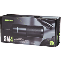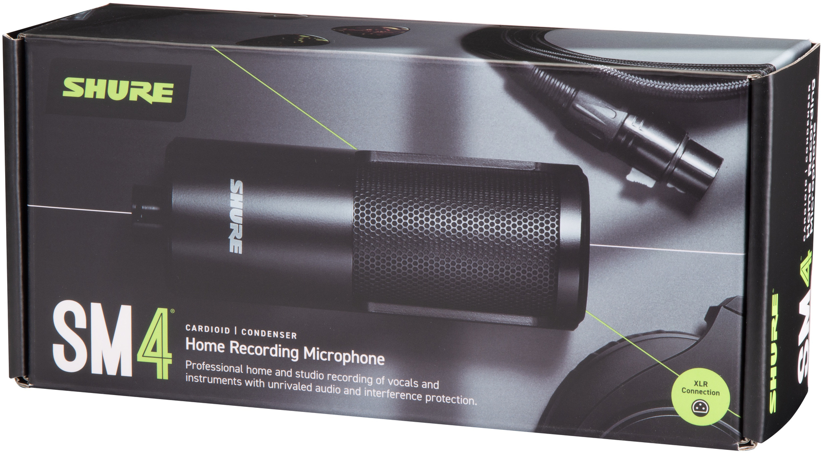Bring the studio home with the new SM4 Home Recording Microphone. Capture professional recordings of vocals and instruments with mix-ready audio and interference protection. The 1” brass dual-diaphragm capsule is engineered to consistently reproduce every element of your performance with remarkable accuracy and exceptional low-frequency control. Patent-Pending Interference Shielding Technology blocks unwanted RF noise from wireless devices including cellphones, laptops and wi-fi routers, while the internal pop filter minimizes plosives. A sleek, low-profile design with all-metal construction delivers the perfect upgrade for your home studio.
