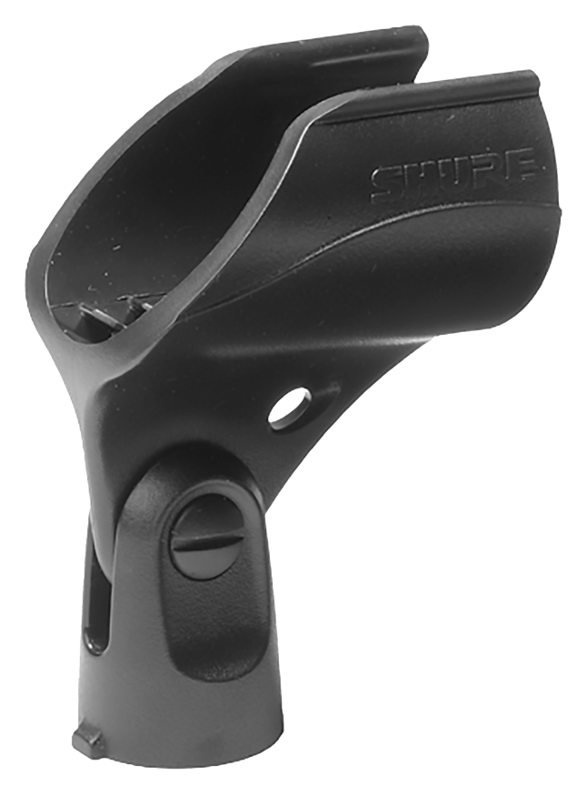 Swivel mount clip for all handheld wireless transmitters, with standard 5/8 inch-27 thread.