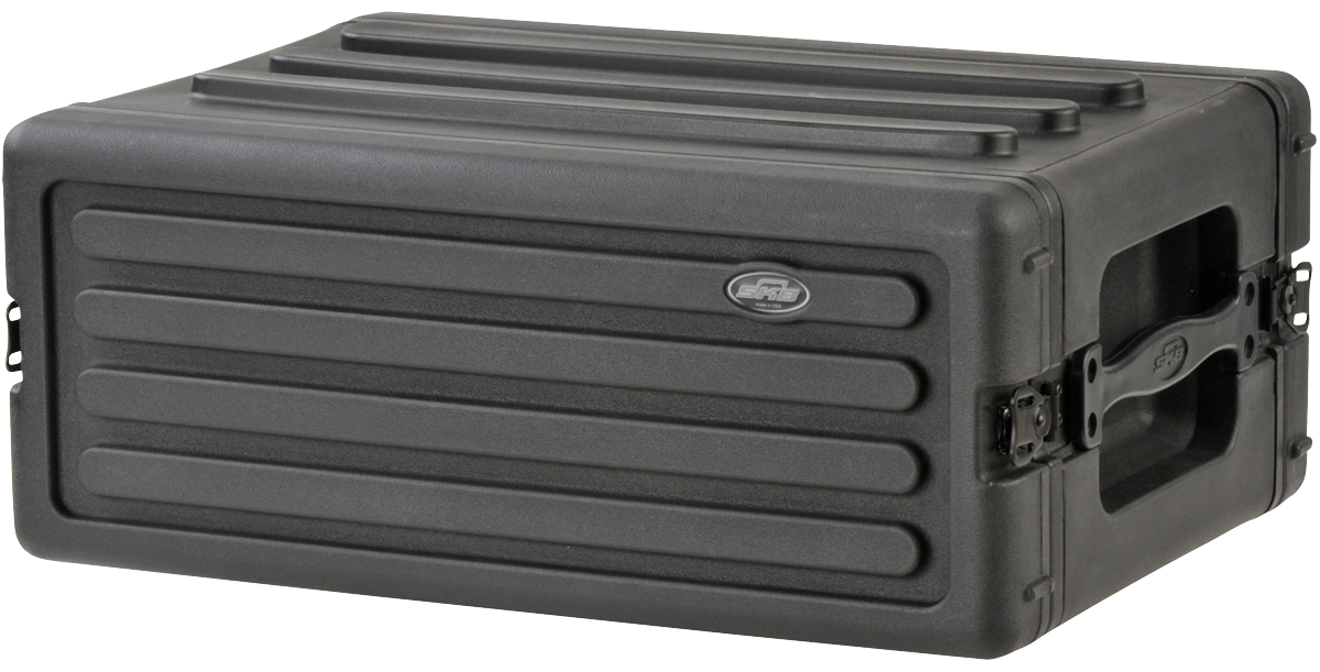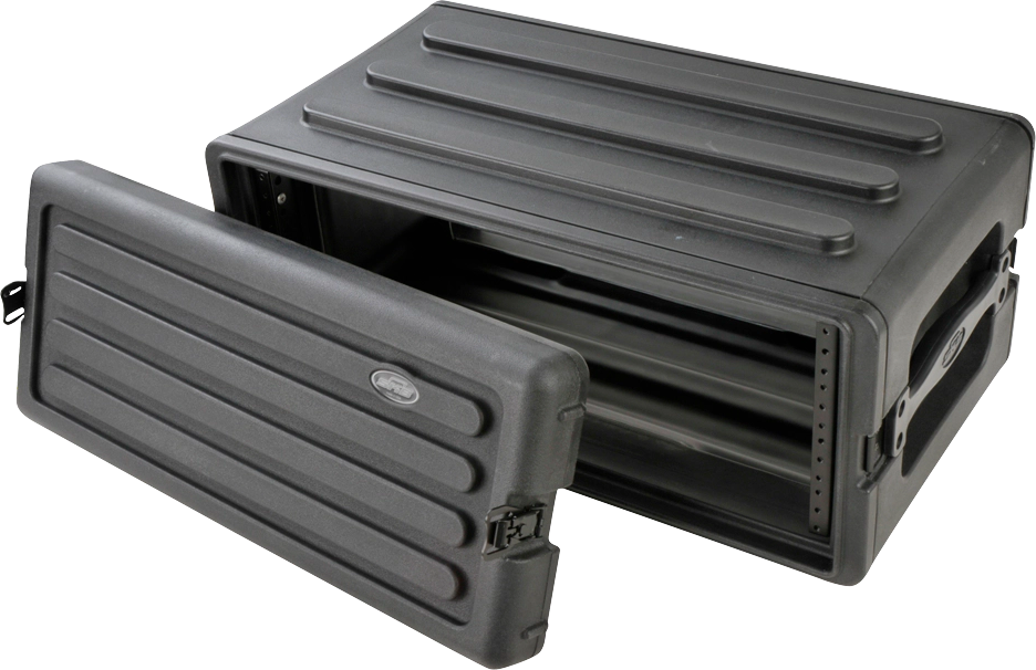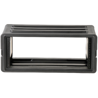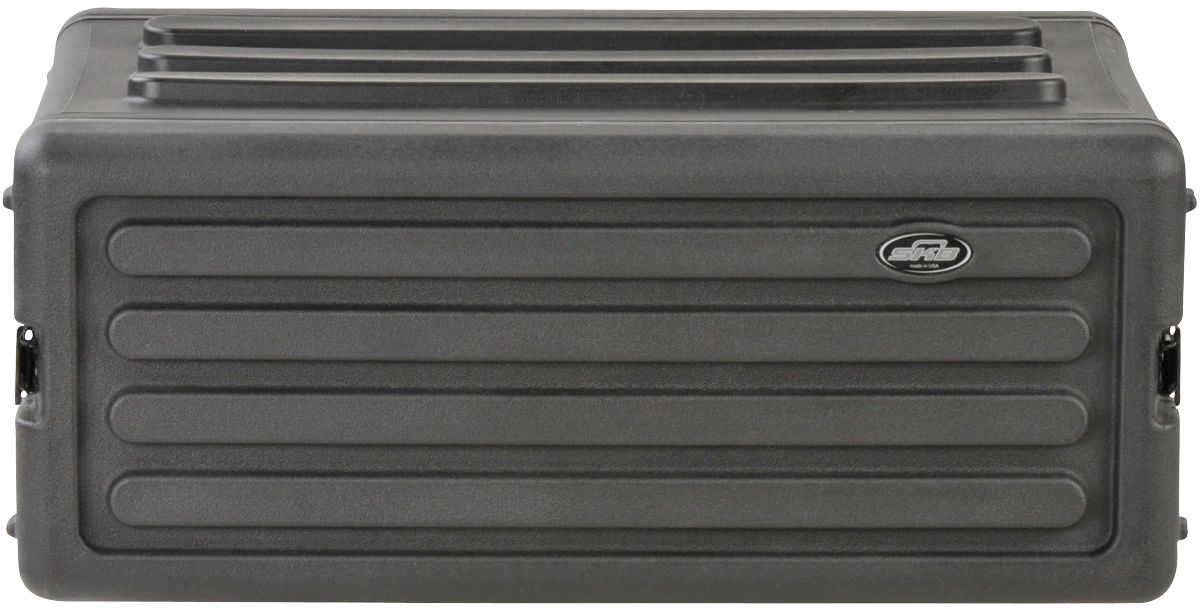 The exteriors feature SKB's recognizable bar design that signifies the rack unit size on the front and rear lids. Molded bars on top and bottom also provide interlocking capabilities allowing you to easily and securely stack them with SKB's Standard Roto Racks and Roto Rolling Racks, making transport even more convenient and secure. Lids include rubber gasket seals to keep water out. Other standard features include front and rear steel threaded rails and rack screws (10-32 thread), recessed steel Mil-Spec twist latches, flush carry handles, and non-slip rubber feet. All Shallow Racks are 10.7" deep from front rail to rear rail.