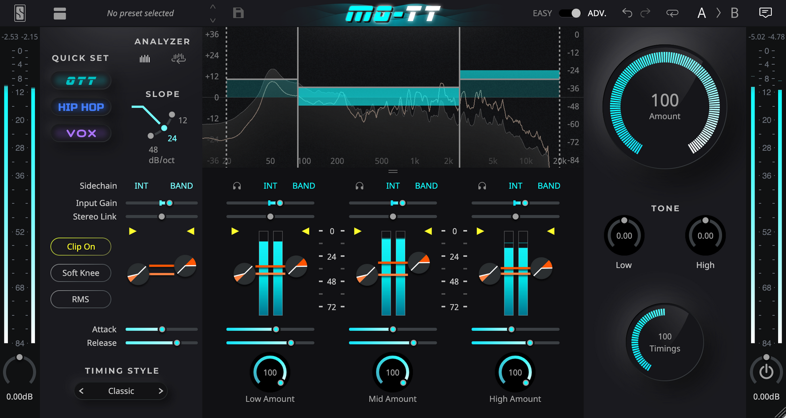 Want that classic OTT sound? Or massive, demonic low end? What about adding vast, spacious presence to vocals? Use Quick Set Modes to instantly dial in the sound you want: OTT, Hip-Hop, or Vox. Adjust finely the behavior of the dynamics and transients by flipping through Classic, Smooth, or Smack Timing Styles. And tweak your sound as much as you want without ever breaking the preset thanks to Global Macros.