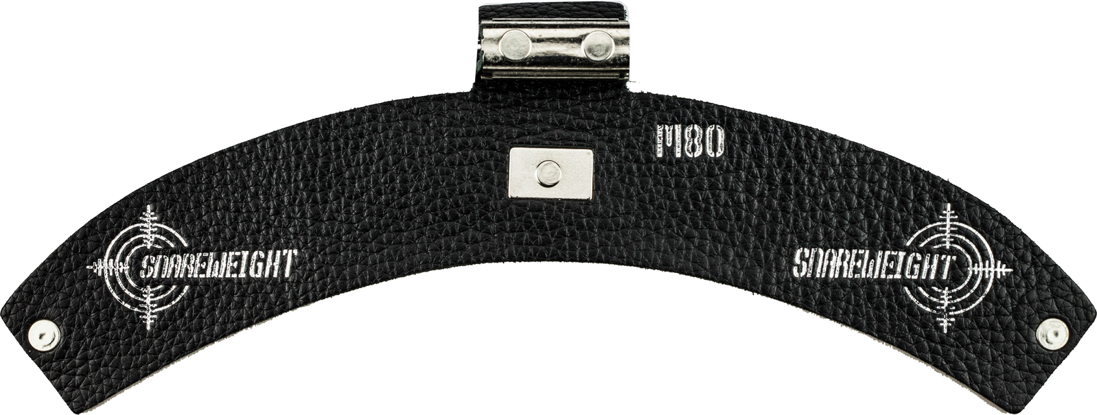 The M80 is engineered to control the resonance without sacrificing the brightness of the drum. One M80 has 4 different dampening settings: mild, medium, heavy and off. Remember the M80 fits any size drum;(8",9,10,12,13,14,16,18, etc.) It also presents some weight on the head (more than tape, plastic etc) which helps shorten the length of ringing. Dampen in a snap or disengage even faster with the on/off feature. Works with triple flange hoops, die cast, angel hoops, true hoops, brass hoops, 1/4" wood. Leather thickness does vary between 1.5mm to 2mm.