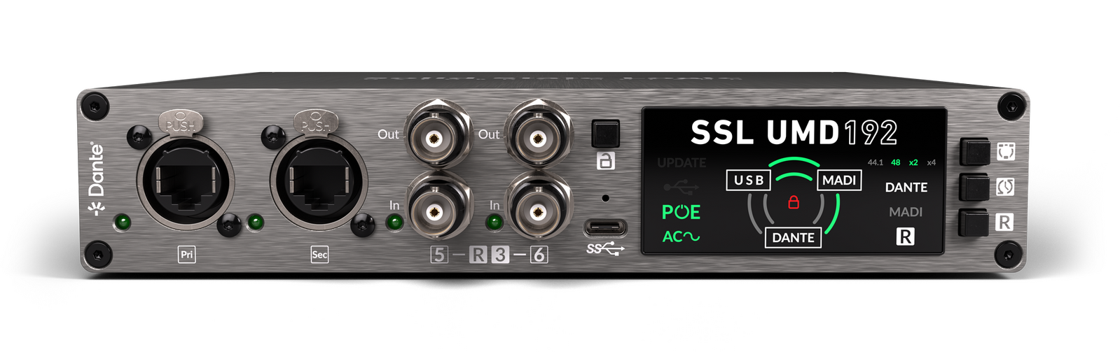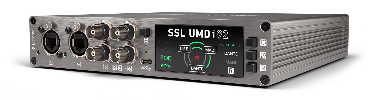 It’s an ideal computer interface for Harrison 32Classic systems with Dante, and a perfect match for SSL Oracle or ORIGIN installations with Dante or MADI conversion. The UMD192 is a powerful solution for non-SSL console users in live sound, broadcast, studio and postproduction settings. Offering exceptional connectivity, format bridging and operational flexibility in a compact, portable form factor.