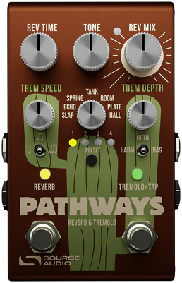 Pathways brings tremolo and reverb together in one compact pedal designed to feel great the moment you plug in. From spring reverb twang and classic amp tremolo to wider, more spacious textures, Pathways delivers sounds players reach for again and again - organic, musical, and easy to dial in.