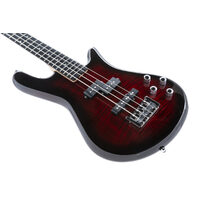 The Legend 4 Standard offers the coveted Spector NS body design at a price that is well within the reach of all bassists. The extremely comfortable curved body is crafted from lightweight, solid ash and sports a genuine flame maple top. The five-piece maple and padauk neck features a 24 fret amara fingerboard that’s perfectly tapered for comfort. The Legend Standard also features professional quality chrome hardware, including hi-mass bridge that provides rock solid intonation and performance. Specially designed open coil Spector P/J style pickups provide this bass with a clear, punchy tone. The pickups are complemented by a versatile two-band active EQ controls that offer 12dB of boost or cut for both treble and bass controls. Adorned with a high gloss finish, the Legend 4 Standard provides the looks, tone, and feel of basses twice its price.