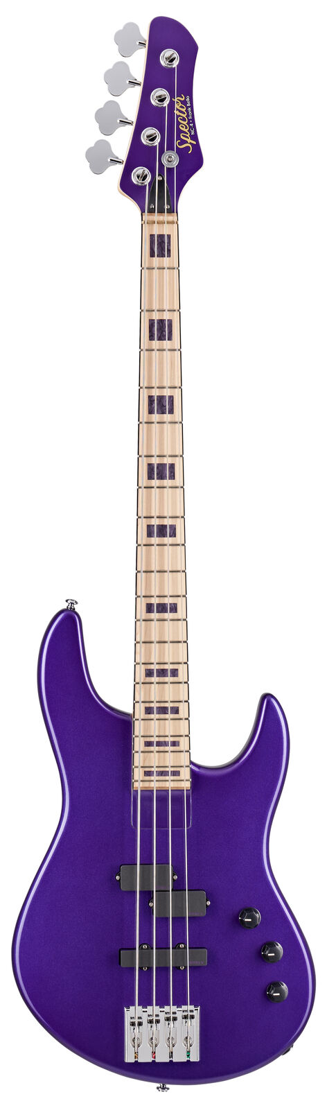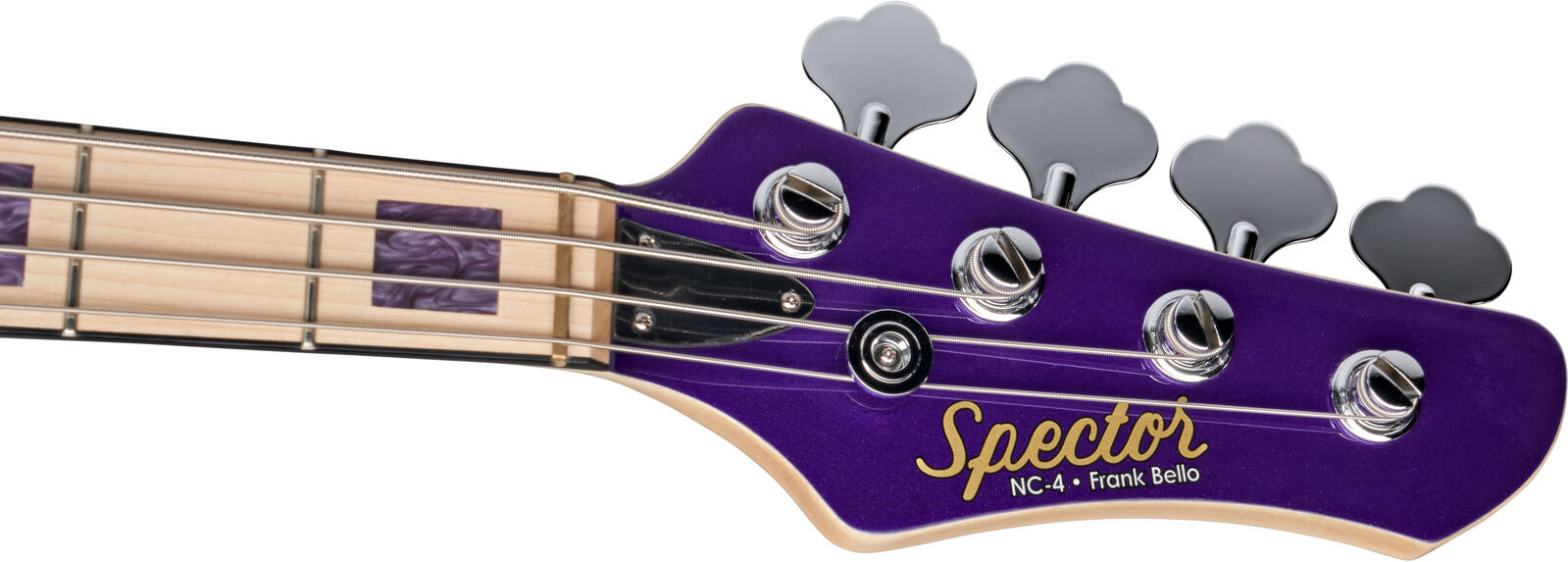 Frank Bello, best known as the bassist of New York’s legendary thrash metal pioneers Anthrax, has joined forces with Spector basses to develop an all-new instrument. Dubbed the NC-4 Frank Bello, this bass is inspired by both Spector’s rich history and iconic American bolt-on bass design. With its refined shape, radiused top, and uniquely contoured neck heel, the NC-4 is a player’s dream, offering a nimbler and more playable approach to the classic bolt-on platform. Carefully designed with Frank, his NC-4 showcases a stunning metallic purple finish named Tina Rose, in honor of his mother and grandmother who supported his dream of playing music for a living. Completed with a matching headstock and complimenting purple acrylic block fingerboard inlays.