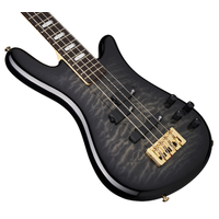 The NS Icon Bolt-On pairs a resonant, fully curved Alder body with a bolt-on 3-piece rock maple neck and rosewood fingerboard, – a combination of tonewoods used frequently in both our Custom Shop and renowned Euro Series.Aesthetically, players can choose from two solid gloss finishes (Black and White) or two timeless stain finishes (Black Cherry and Black Stain), both featuring highly figured Quilted Maple tops. Every model is adorned with our signature Crown inlays and gold hardware, including a fully intonating locking bridge, high-precision tuners, polished brass nut, and signature Spector control knobs. The NS Icon Bolt-On is available in both 4-string and 5-string models.