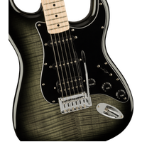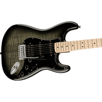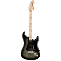 A superb gateway into the time-honored Fender® family, the Squier® Affinity Series® Stratocaster® FMT HSS delivers legendary design and quintessential tone for today's aspiring guitar hero. This Strat® features several player-friendly refinements such as a thin and lightweight body with an eye-catching flame maple top (FMT), a slim and comfortable "C"-shaped neck profile, a 2-point tremolo bridge for superior tremolo action and sealed die-cast tuning machines with split shafts for smooth, accurate tuning and easy restringing. Loaded with a Squier humbucking bridge pickup and single-coil neck and middle pickups for genre-defying sonic variety, this model is ready to accompany any player at any stage.