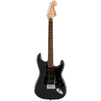 A superb gateway into the time-honored Fender® family, the Squier® Affinity Series™ Stratocaster® HSS delivers legendary design and quintessential tone for today’s aspiring guitar hero. This Strat® features several player-friendly refinements such as a thin and lightweight body, a slim and comfortable “C”-shaped neck profile, a 2-point tremolo bridge for superior tremolo action and sealed die-cast tuning machines with split shafts for smooth, accurate tuning and easy restringing. Loaded with a Squier humbucking bridge pickup and single-coil neck and middle pickups for genre-defying sonic variety, this model is ready to accompany any player at any stage.