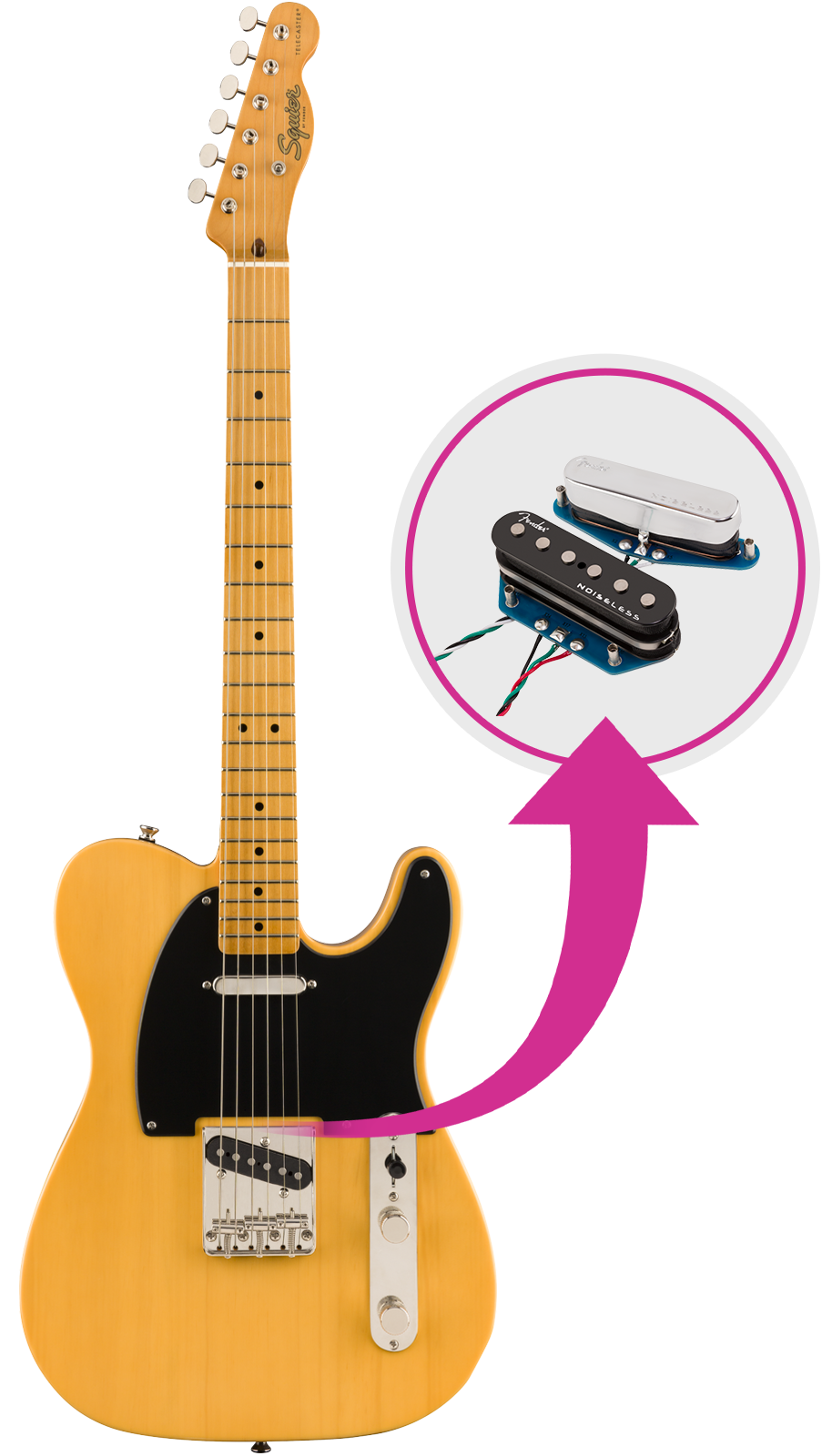 Ultra Noiseless Telecaster pickups have the twang and bite that you expect from vintage Telecaster pickups, with no hum.