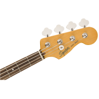 A tribute to the decade of its birth, the Classic Vibe ‘60s Jazz Bass® combines the luxurious playability that made it famous with the versatility and massive tone of its dual Fender-Designed alnico single-coil pickups. Player-friendly features include a slim, comfortable “C”-shaped neck profile with an easy-playing 9.5”-radius fingerboard and narrow-tall frets, as well as a vintage-style bridge with threaded saddles. This throwback Squier model also features 1960s-inspired headstock markings, rich-looking nickel-plated hardware and a slick vintage-tint gloss neck finish for an old-school vibe.