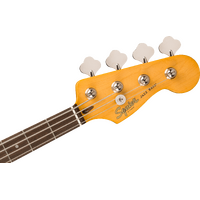 A tribute to the decade of its birth, the Classic Vibe '60s Jazz Bass® combines the luxurious playability that made it famous with the versatility and massive tone of its dual Fender Designed™ alnico single-coil pickups. Player-friendly features include a slim, comfortable "C"-shaped neck profile with an easy-playing 9.5"-radius fingerboard and narrow-tall frets, as well as a vintage-style bridge with threaded saddles. This throwback Squier model also features 1960s-inspired headstock markings, rich-looking nickel-plated hardware and a slick vintage-tint gloss neck finish for an old-school vibe.