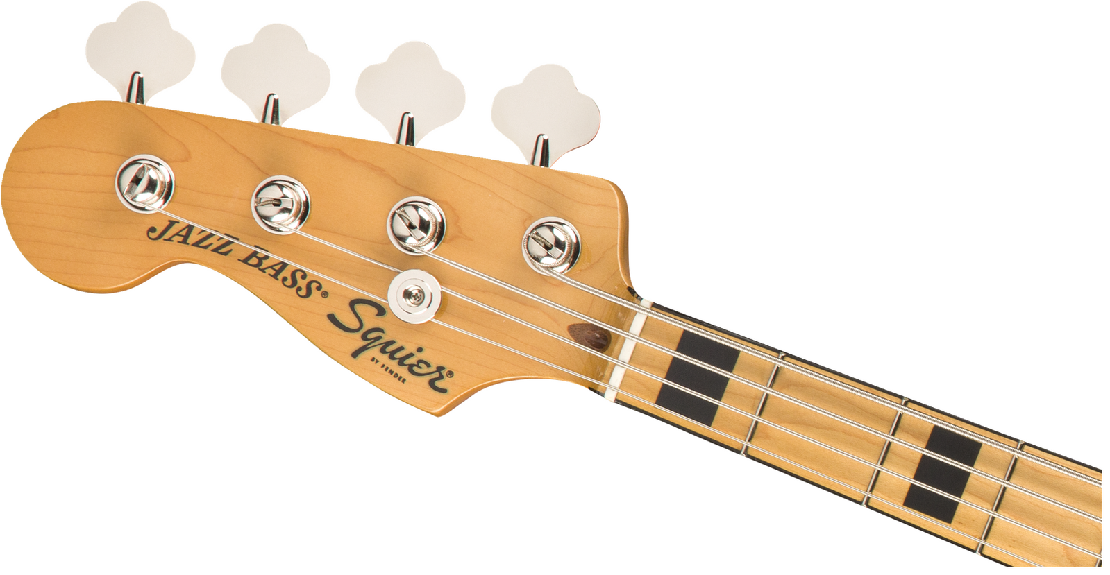 The Classic Vibe ‘70s Jazz Bass® is a nod to the 1970s evolution of the J Bass®, combining the luxurious playability that made it famous with the versatility and massive tone of its dual Fender-Designed alnico single-coil pickups. Player-friendly features include a slim, comfortable “C”-shaped neck profile with an easy-playing 9.5”-radius fingerboard and narrow-tall frets, as well as a vintage-style bridge with slotted barrel saddles for solid string stability. This throwback Squier model also features 1970s-inspired headstock markings, rich-looking nickel-plated hardware and a slick vintage-tint gloss neck finish for an old-school vibe.