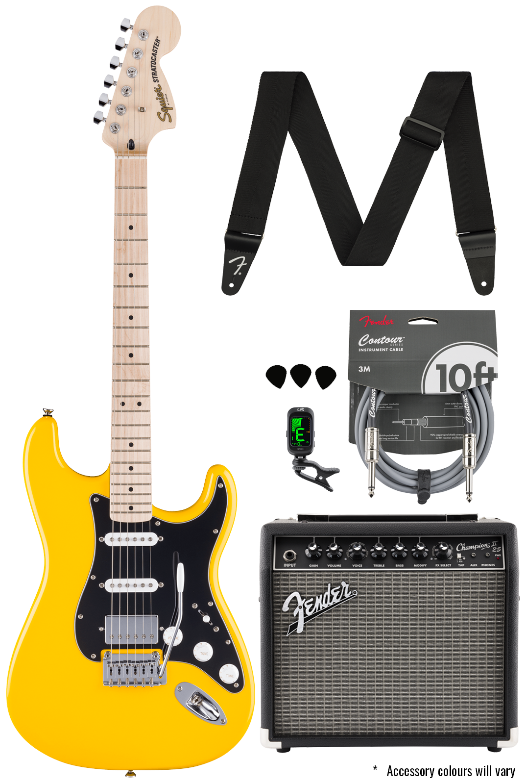 Squier FSR Affinity Stratocaster HSS Graffiti Yellow Bundle