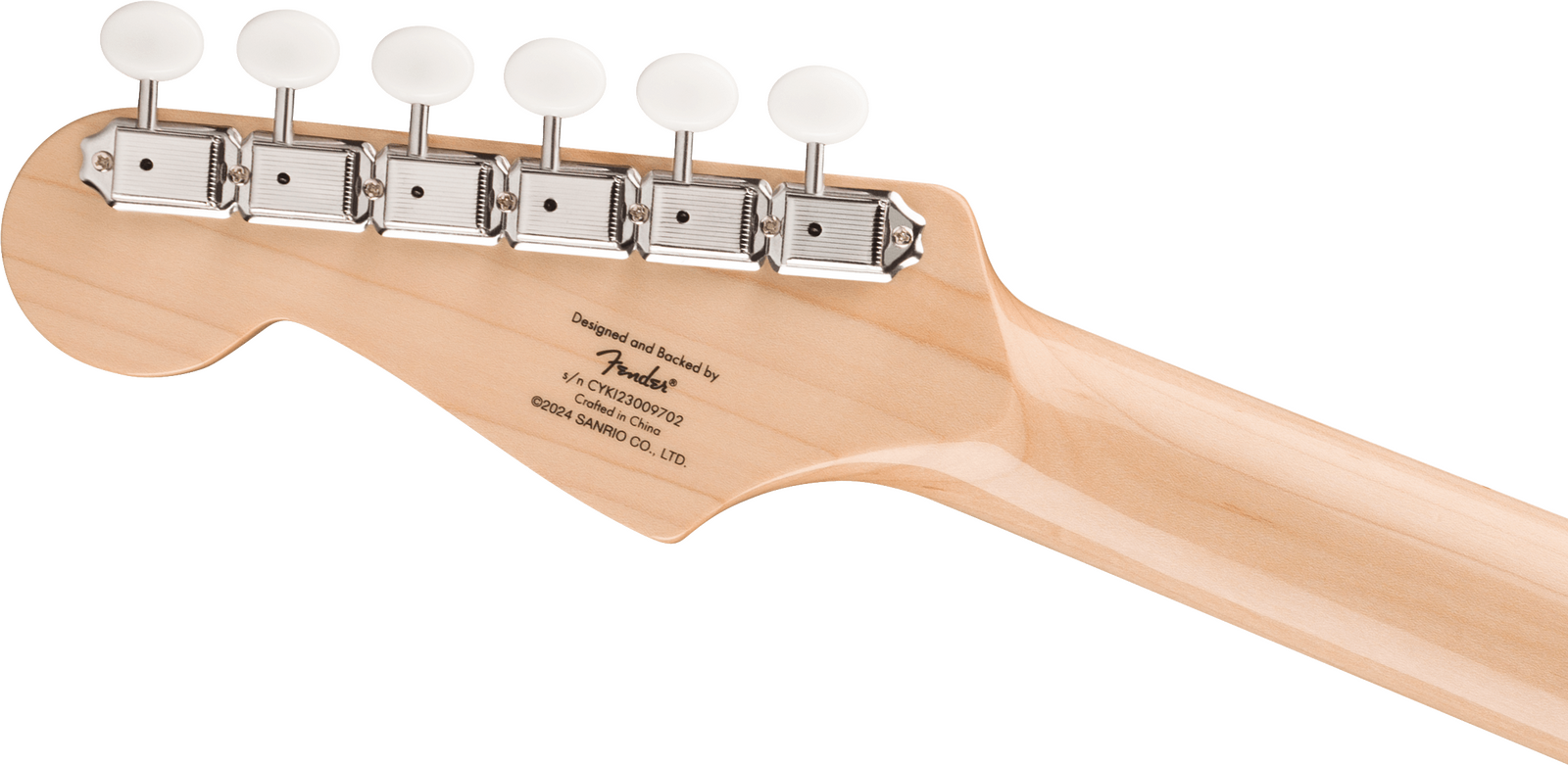 Featuring Hello Kitty graphics, the headstock matches the body color for a cohesive look.