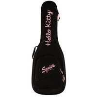 This model includes a custom deluxe gig bag with pink piping and stitching, as well as a zippered accessory pouch and comfortable padded straps for Hello Kitty style on the go.