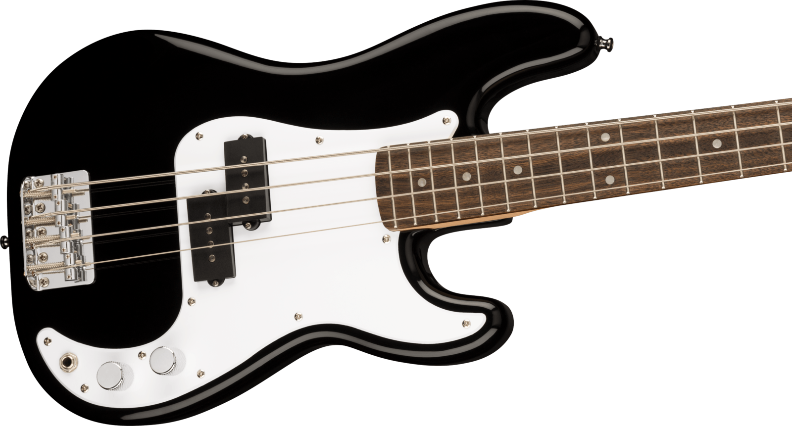 The Squier Mini Precision Bass® is the perfect companion for players seeking a reduced-size instrument with classic styling and familiar Fender® tone. Highlights include a thin and lightweight body, a short-scale neck with an easy-to-play “C”-shaped profile, a Squier split single-coil pickup with volume and tone controls for sonic variety, and a hardtail bridge for solid tuning stability.