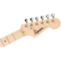The Squier Mini Stratocaster® is the perfect companion for players seeking a reduced-size instrument with classic styling and familiar Fender® tone. Highlights include a thin and lightweight body, an easy-to-play "C"-shaped neck profile, a trio of Squier single-coil pickups with 5-way switching for sonic variety, and a hardtail bridge for solid tuning stability.