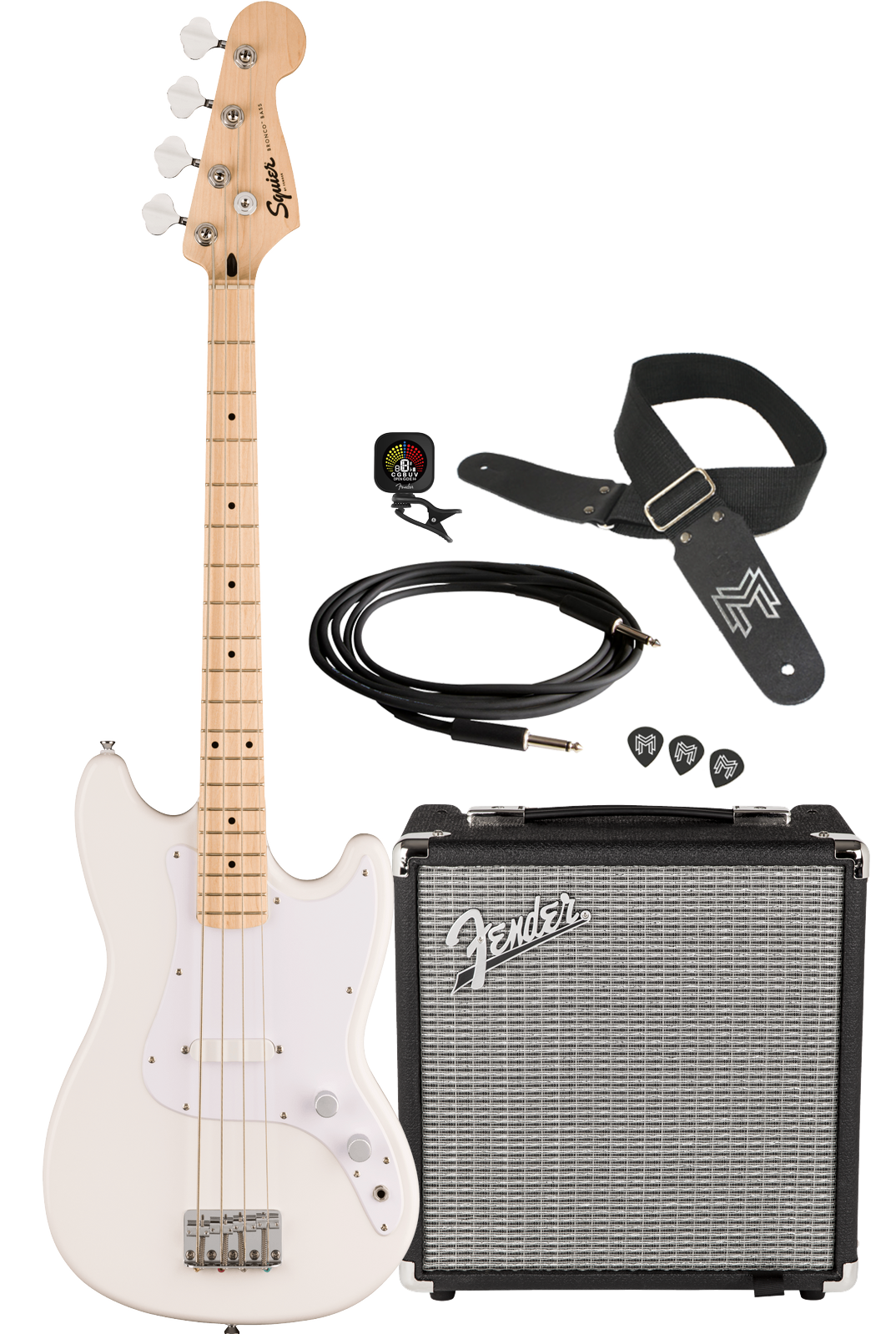 Squier Sonic Bronco Bass Arctic White Bass Bundle