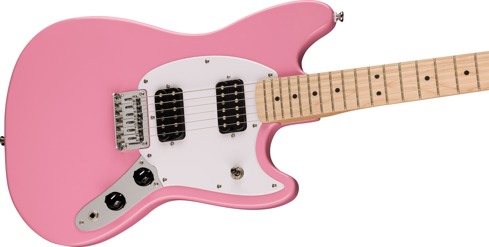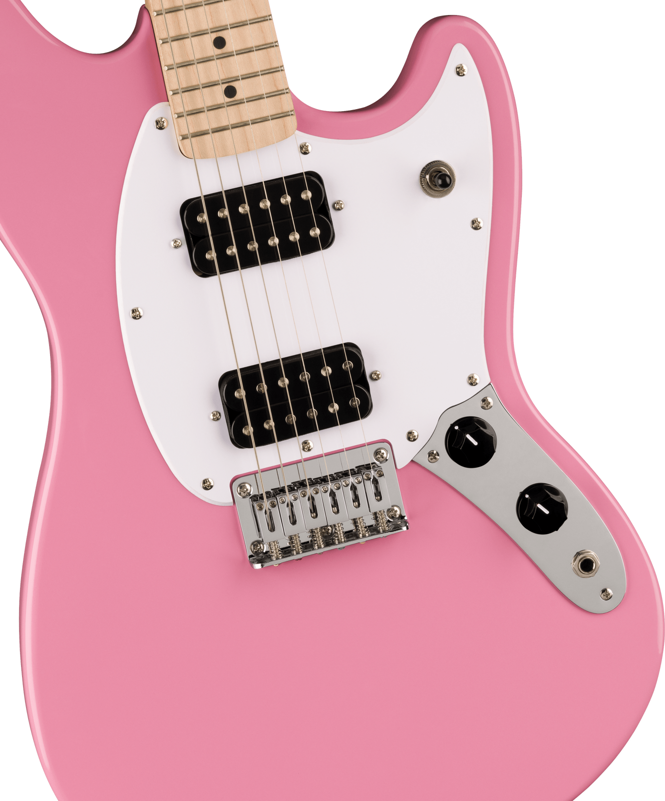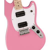 The Squier Sonic® Mustang® HH is ready to launch any musical adventure into warp speed, offering iconic Fender® style and inspiring tone for players at any stage. This Mustang sports a slim and inviting "C"-shaped neck profile and a thin, lightweight body for optimal playing comfort while a pair of Squier® humbucking pickups (HH) serve up substantial, high-output tone. Further details of this model include a short 24" scale length, 6-saddle hardtail bridge for reliable intonation, sealed-gear tuning machines for smooth, accurate tuning and durable chrome-plated hardware that is sure to catch the spotlight.