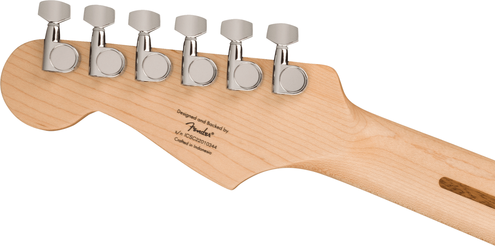 The Squier Sonic™ Stratocaster® HSS is ready to launch any musical adventure into warp speed, offering iconic Fender® style and inspiring tone for players at any stage. This Strat® sports a slim and inviting “C”-shaped neck profile and a thin, lightweight body for optimal playing comfort. The HSS pickup configuration denotes a humbucking (H) bridge pickup for substantial, high-output tone, complimenting the single-coil (S) neck and middle pickups that chime with crystal clarity. Further details of this model include a tremolo bridge for expressive vibrato effects, sealed-gear tuning machines for smooth, accurate tuning and durable chrome-plated hardware that is sure to catch the spotlight.