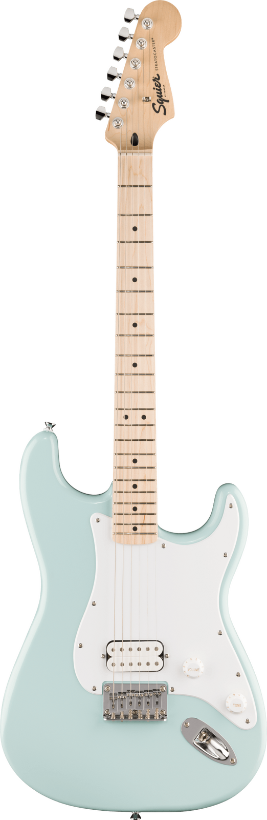 The Squier Sonic® Stratocaster® HT H is ready to launch any musical adventure into warp speed, offering iconic Fender® style and inspiring tone for players at any stage. This Strat® sports a slim and inviting "C"-shaped neck profile and a thin, lightweight body for optimal playing comfort while a Squier® humbucking (H) bridge pickup delivers substantial, high-output tone. Further details of this model include a 6-saddle hardtail bridge (HT) for reliable intonation, sealed-gear tuning machines for smooth, accurate tuning and durable chrome-plated hardware that is sure to catch the spotlight.