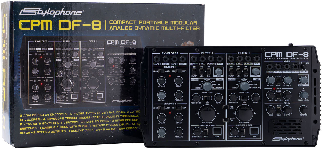 This cutting-edge filter unit combines the precision of a smooth analog recreation of the classic 2045 Lowpass filter with the bold, dynamic character of Stylophone’s proprietary GEN R-8 filter. Dubbed “Beauty and the Beast,” the DF-8 offers unparalleled flexibility. The 2045 filter delivers a silky 24 dB/octave Lowpass mode, while the GEN R-8 snarls and howls in all four modes—Lowpass, Bandpass, Highpass, and Notch. Together, these filters unlock three additional combination types: Bandpass+, Band Reject+, and a wide Notch+ mode, providing an expansive palette of unique filter sounds.