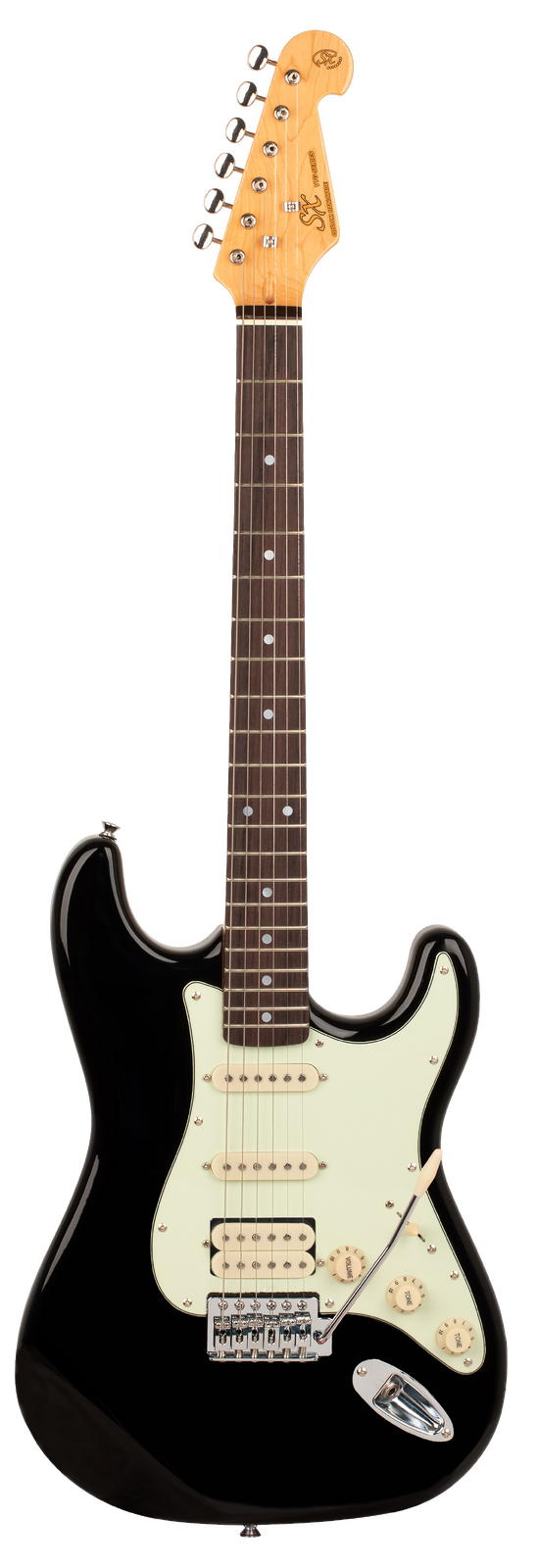 21 frets. 2 single coil and 1 humbucker (bridge) pickups.