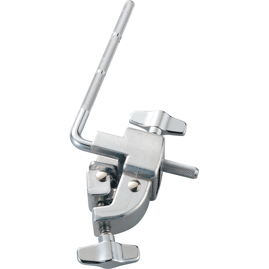 This simple attachment allows cowbells to be mounted on the bass drum. The length and angle of the L-rod can be easily changed for optimum positioning.