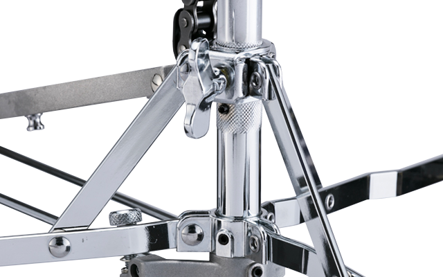This hi-hat stand features a flat base with single braced legs making for a sleek, lightweight design that's very easy to transport.