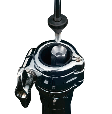 The perfect counterpart to Iron Cobra 900 Series bass drum pedals, the Iron Cobra 900 Series hi-hat stands offer incredibly sensitive, lightning-fast action, maximum adjustability and completely noise-free operation. The latest innovation on these stands, the new "Quick-Set Clutch", allows hi-hat cymbals to be quickly attached and removed. The Hinge Guard Block on the footboard holds the bearing more evenly, minimizing stress and maximizing smoothness.