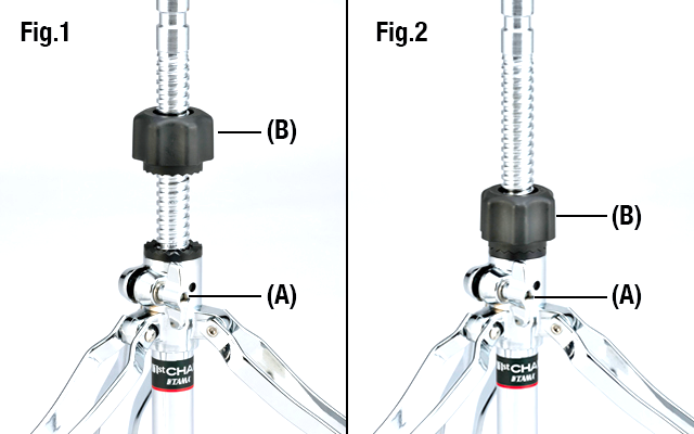 By simply loosening the square head bolt of the side pillar, you can change the height of the beater shaft. This makes it possible to have the beater strike the center of the bass drum without using a bass drum lifter or adjusting the length of the beater.