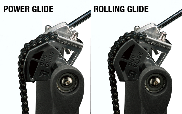 The newest addition to the Iron Cobra series, the Iron Cobra 600's most unique feature is a reversible cam called the "Duo Glide Cam." A simple adjustment allows fast changes between a true round "Rolling Glide" sprocket and an offset "Power Glide" sprocket. Drummers can choose the appropriate cam based on playing style, musical environment, and personal preference. In addition, the Iron Cobra 600 features a newly designed hinge for precise footboard action, and ball bearing equipped "Speedo-Ring" rocker cam.