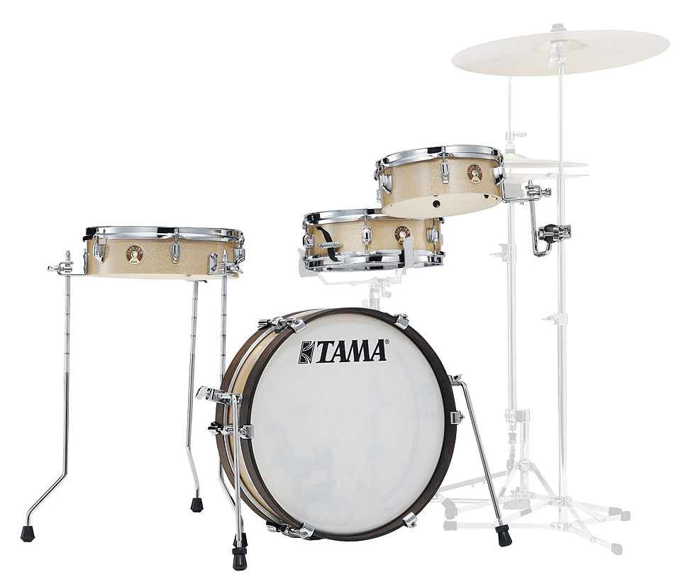 The ultra-shallow shells allow the tom-tom, floor-tom, snare drum, and bass drum to all fit into just a single specially designed portable bag.