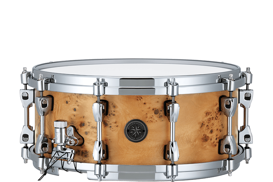 The combination of Maple's open, resonant sound with the Grooved Hoop and super sensitive Hi-Carbon Snappy gives this drum a rich, open, crisp sound reminiscent of prized vintage snares