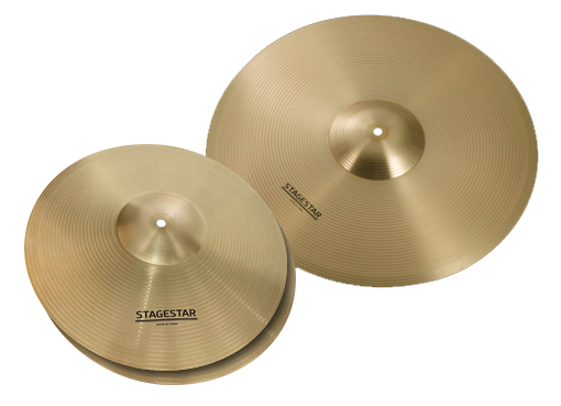 Brass Cymbal set (14" Hi-hats & 16" Crash) included.