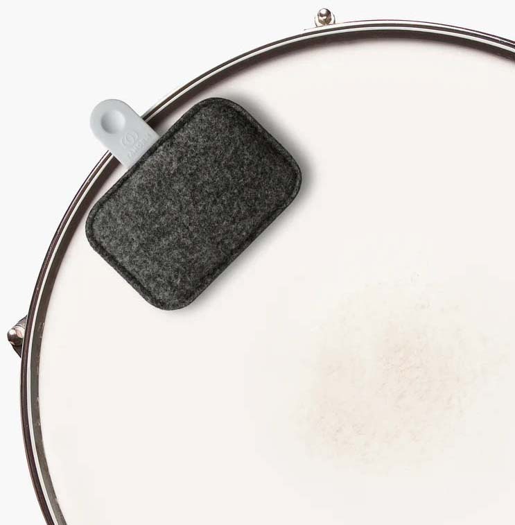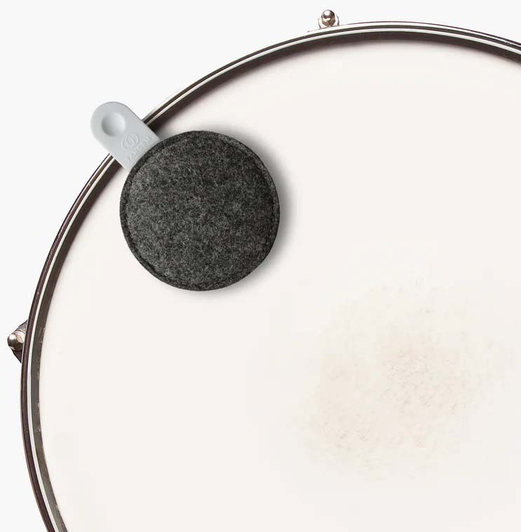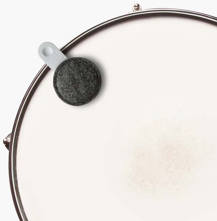 Drops are designed to control overtones while letting the drum's natural tone come through. Rather than adhering to the drum head, they vibrate with it.