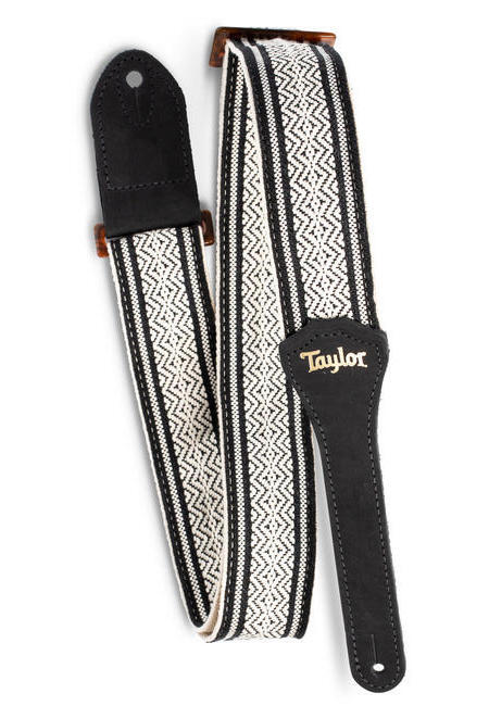 The Taylor Academy Jacquard Leather Guitar Strap delivers comfort and support with an earthy, organic look woven from premium cotton. This unique strap features a jacquard pattern with genuine suede end tabs and an embossed gold Taylor logo. At 2" wide, it provides comfortable support on the shoulder with enough freedom to let you move while you play. The Taylor Academy strap comes in white and brown or white and black. Made in the USA.