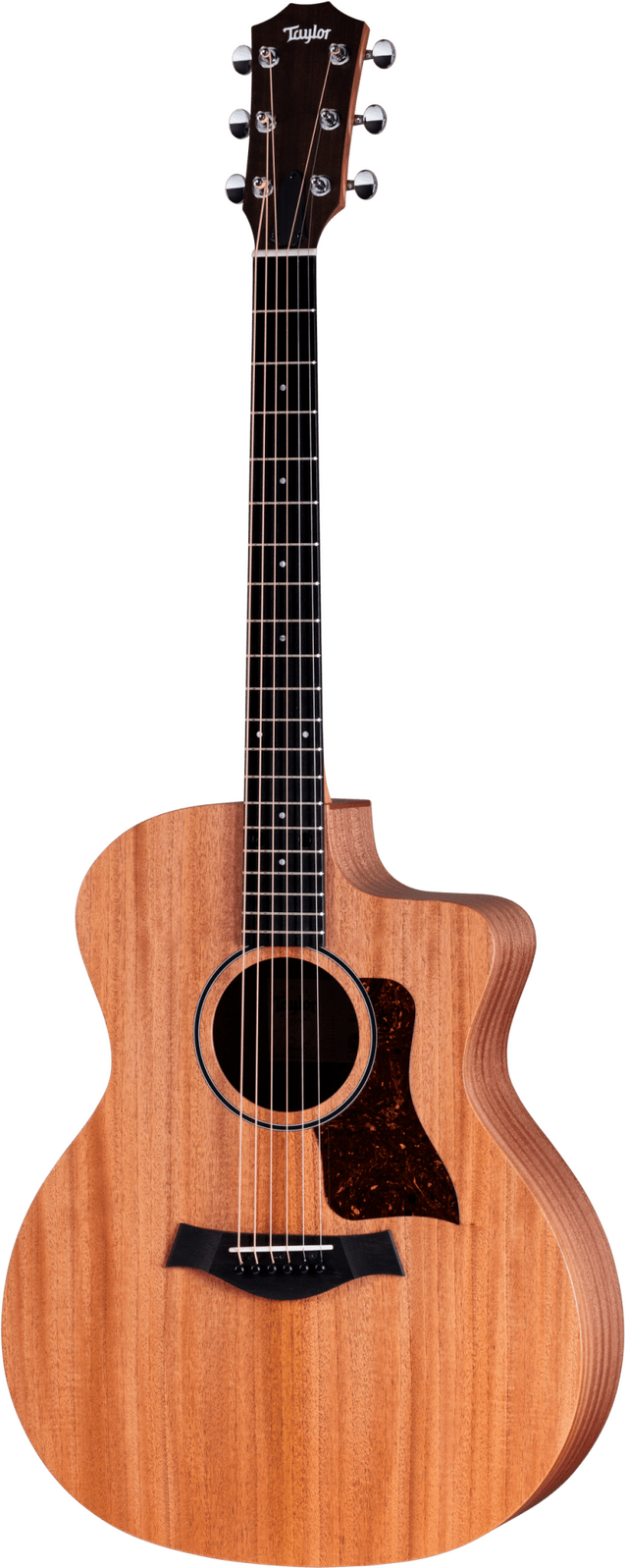 Blending warm, lively acoustic character with signature Taylor playability, the 24ce brings our full-size, full-scale cutaway Grand Auditorium experience to an accessible entry-level price point. A solid mahogany top delivers a warm, dry tonal profile with a strong focus on the midrange—perfect for players who enjoy a rootsy, earthy sound. Featuring layered sapele back and sides, the 24ce’s tonal balance makes it a dependable choice for strummers and fingerstyle players alike. Inside, Taylor's unique voicing architecture bolsters the overall volume and sustain, with greater harmonic agreement between notes along the entire ebony fretboard. A slim, heelless maple neck delivers the smooth, familiar feel Taylor players expect. Visually, the 24ce keeps things simple yet stylish with subtle 4mm dot inlays, a single-ring black rosette, chrome tuners and a faux-tortoiseshell pickguard. This model includes onboard Fishman Sonitone GT-2 electronics and ships in a gig bag so you can easily plug in and play wherever your music takes you.