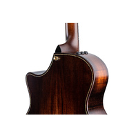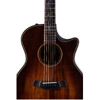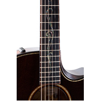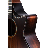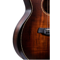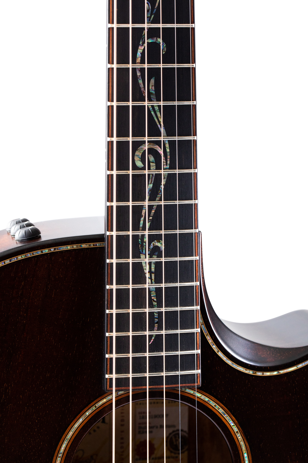 The latest koa entry in the Builder’s Edition family is this Grand Auditorium K24ce, build with all-solid Hawaiian koa with V-Class bracing under the hood. Sonically, it bears the hallmarks of koa’s unique tone, with high-end clarity balanced against the volume and sustain improvements delivered by the new bracing scheme. Koa’s inimitable aging properties also make this guitar a special find, opening and adding depth and sweetness as the guitar is played over time. Designed to optimize the player’s experience with a handful of ergonomic features, this model includes a double-contoured cutaway for easy playing all the way down to the highest frets, along with a smooth armrest that takes the pressure off the player’s strumming arm. The Silent Satin finish treatment adds a subtle visual touch while removing much of the incidental noise that comes from the player’s arm movement, making this an ideal choice for session or studio players looking to lay down tracks. It ships with ES2 electronics in a deluxe hardshell case.