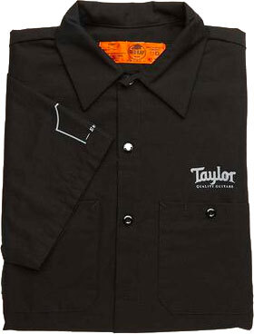 Taylor short-sleeve work-style shirt in black featuring Taylor emblem and “crown” headstock logo on sleeve.