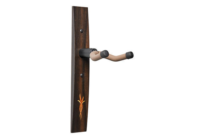 This finely crafted guitar wall hanger is made from genuine West African Crelicam ebony, the same ebony that we use in the fretboards and bridges of our acoustic guitars. A cushioned yoke provides a secure hanging spot for your guitar without damaging the finish or neck, while ebony’s gorgeous visual character reflects the craftsmanship and natural beauty of our responsibly sourced tonewoods. This model features a Bouquet inlay design in myrtlewood and boxwood. Each purchase supports our tree planting projects and other sustainability initiatives. Model #70193.