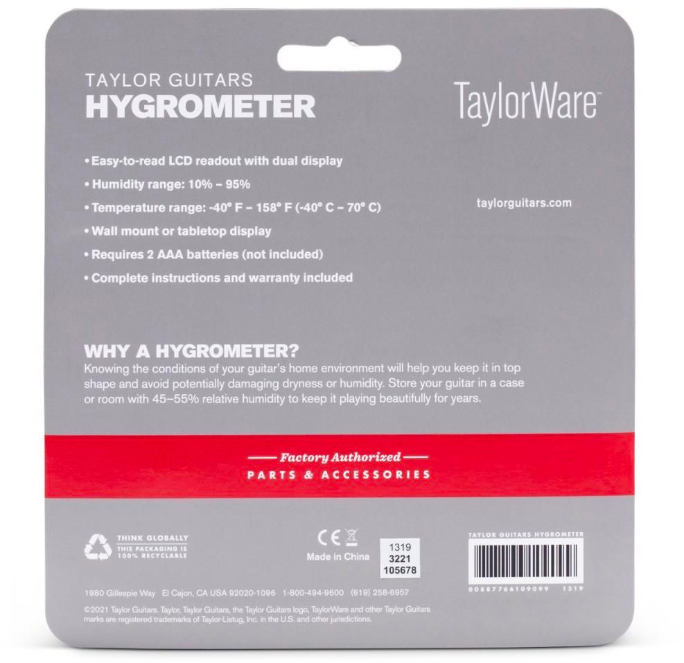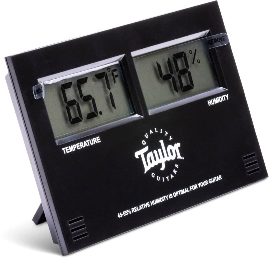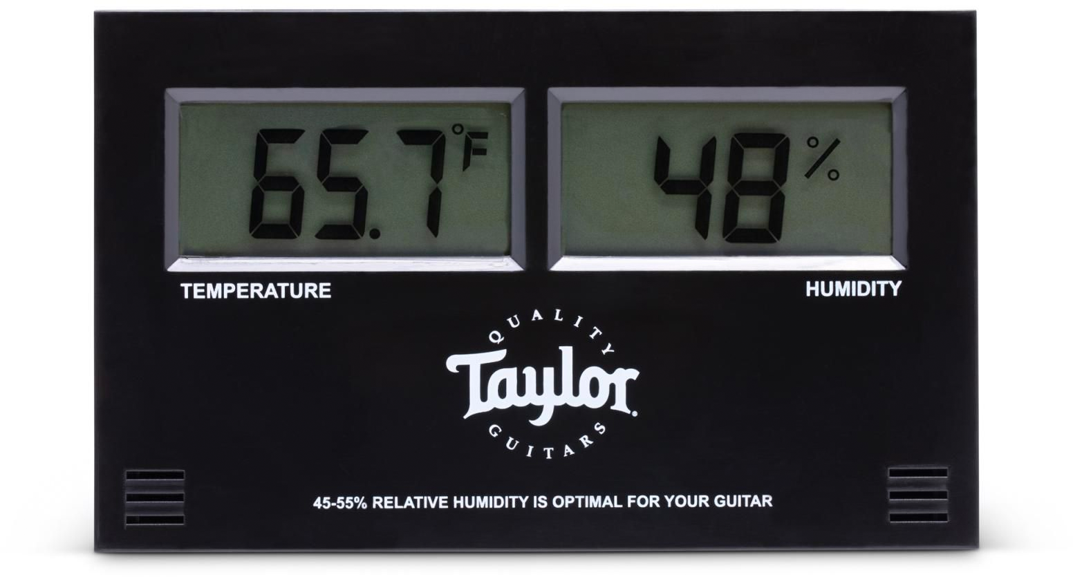 When it comes to helping players take good care of their acoustic guitars, few things are more impactful than reinforcing the importance of relative humidity and temperature to a guitar’s condition. The new digital hygrometer from TaylorWare provides a clear readout of climate information for virtually any space, from the inside of a guitar case to a studio or just a player’s home. Designed with large readouts for both relative humidity and temperature for easy reading at a glance, the hygrometer also features a kickstand for flat surfaces as well as screw holes for easy wall-mounting. Accurate to within 5 percent, the digital hygrometer comes with the required 2 AAA batteries and can switch between Fahrenheit and Celsius.