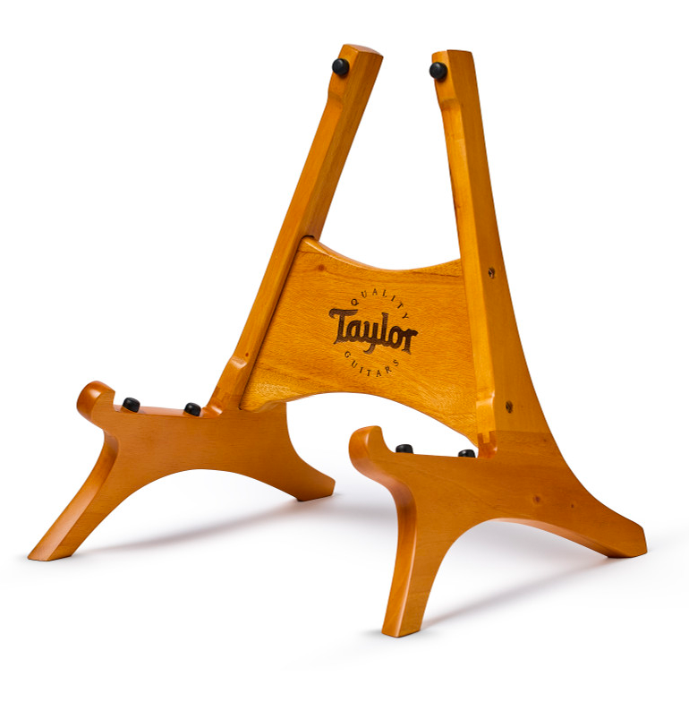 The Taylor Mahogany Guitar Stand is made of a beautiful solid Mahogany and is the perfect compliment to any acoustic guitar. This unique all-wood stand looks great in any room and features a centered Taylor Guitars logo and rubber pads to protect your guitar's finish. Some minor assembly is required. Available in two finishes: Natural, and Dark Stain. Taylor Model #1411.