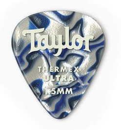 Taylor Premium Thermex™ Blue Swirl Picks are the most popular guitar picks from the Taylor DarkTone™ Series, made with an exclusive thermo-bonding process that helps them produce a warmer, more articulate guitar tone. These picks are available in the classic 351 shape and are precision-cut in 1.0mm, 1.25mm and 1.5mm sizes. Made in the USA. Model #80726