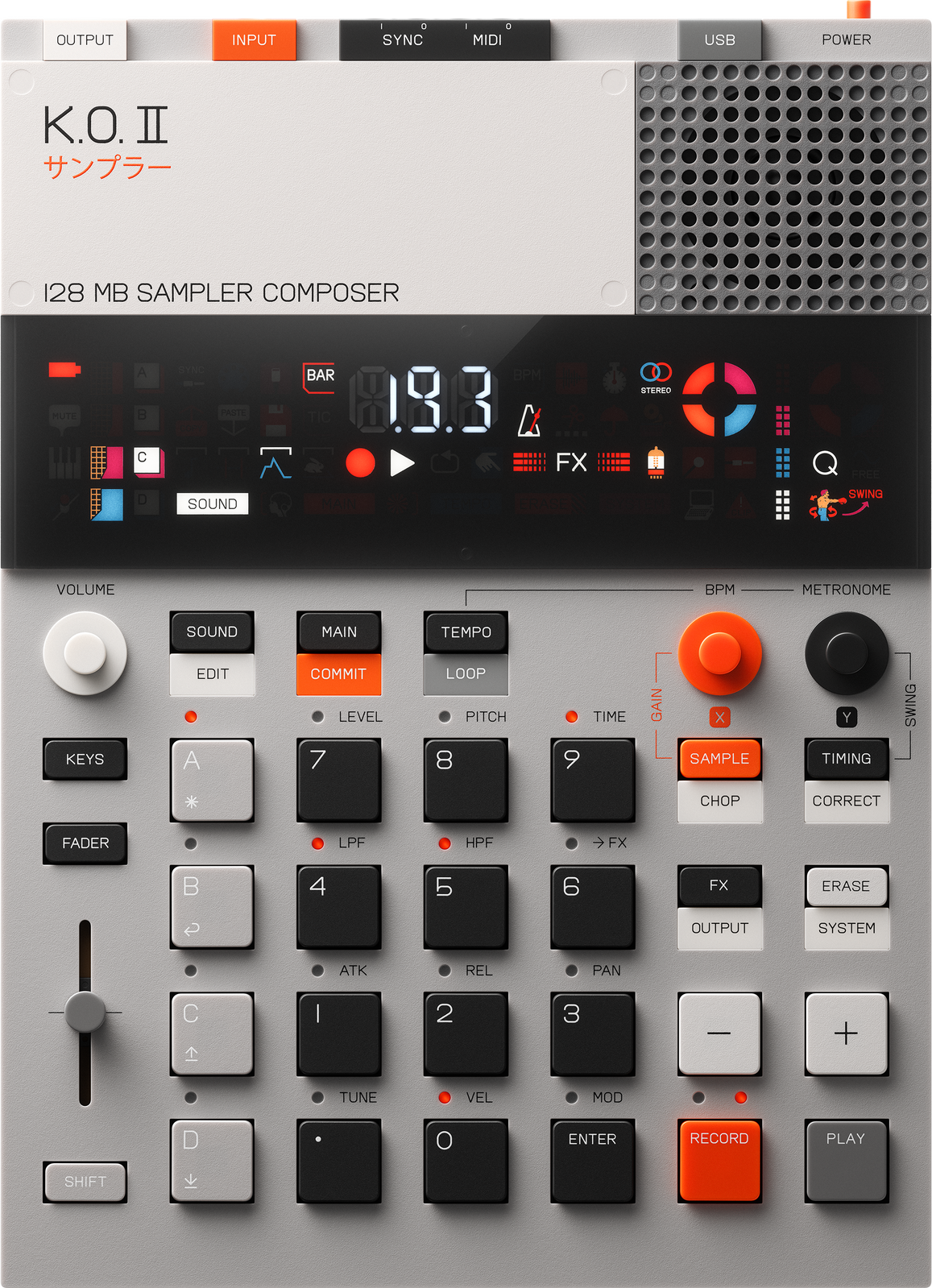 EP–133 K.O. II is a powerful sampler, sequencer and composer. record sounds around you, sequence your samples and loops, tweak and automate filter, pitch and more, add stereo effects, compressor and next generation punch-in effects - go from idea to track faster than ever.
