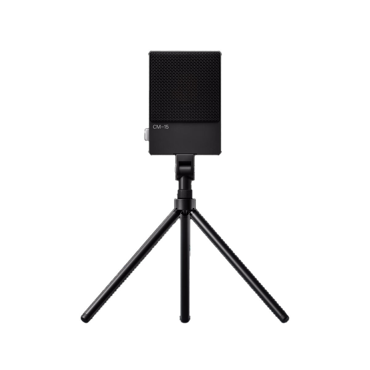 Tripod Mini is a compact mic stand made for portable setups. use CM–15's included adapter to mount onto tripod mini, then tilt the mic to suit your scenario, up to 90° forward and 110° back.