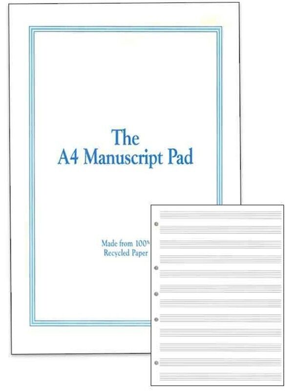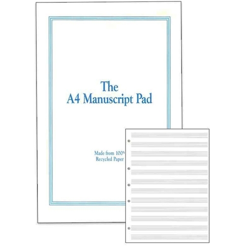 Our best-selling A4 100% Recycled Paper Pad has 50 pull-out sheets with 12 standard staves printed on each side giving you 100 pages of useable manuscript. Conveniently pre-punched with 5 holes to suit all ring binders and a sturdy backboard to provide extra support and an ideal writing surface. Excellent quality and value.