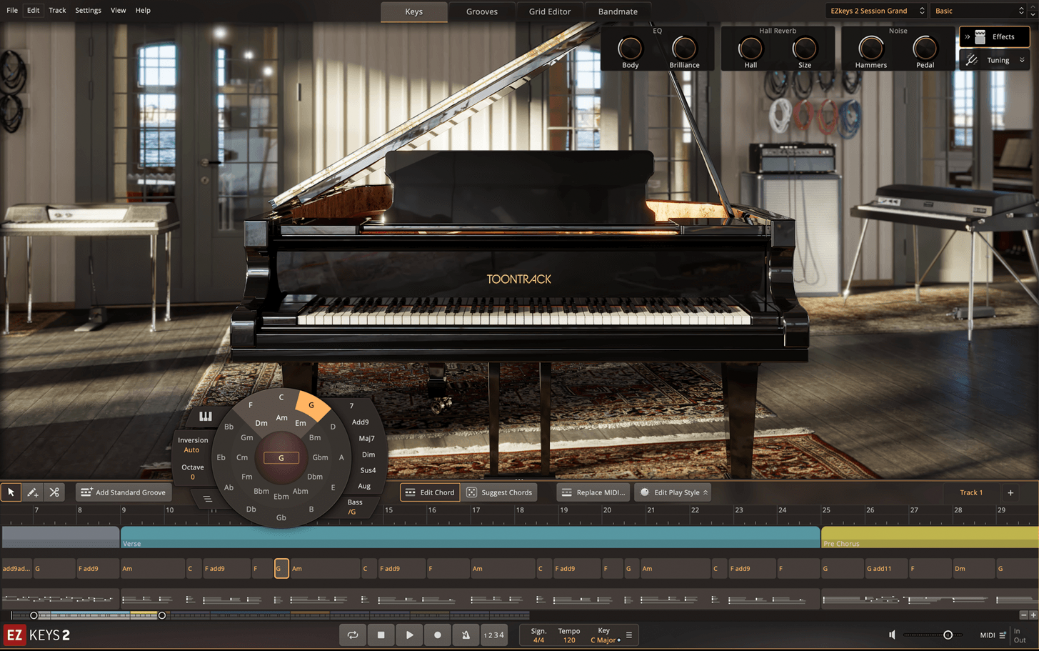 EZkeys 2 supports a wealth of features that allow you to add piano to your already written song parts.