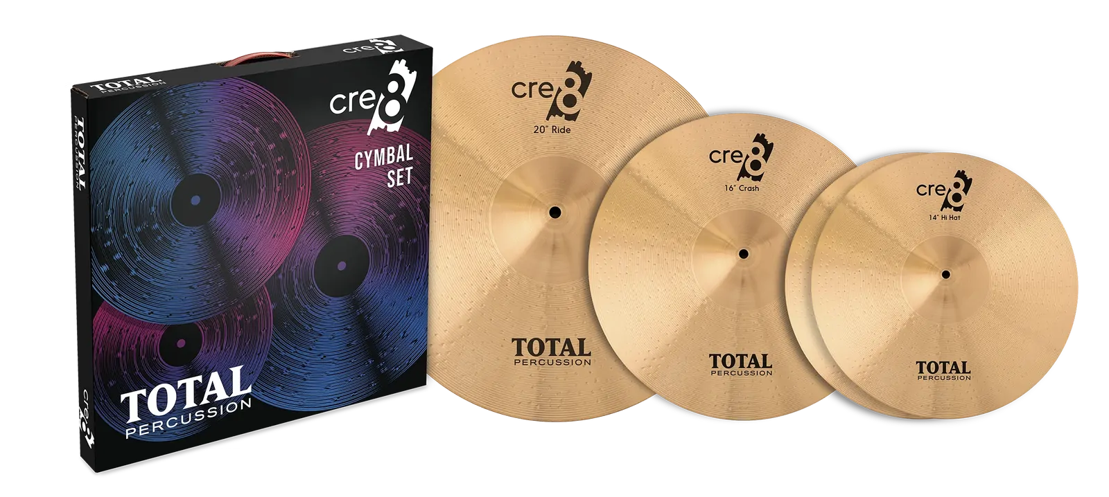 Total Percussion’s new CRE8 Series are meticulously crafted using a B8 Alloy (92% Copper and 8% Tin). All cymbals are hand hammered and lathed producing a stunning range of affordable cymbals. The CRE8 line-up consists of Splashes, Crashes, Rides, Hi-Hats & a China which allows you to construct your perfect cymbal set and create your own palette of sounds. Also available in a configured Box Set that includes a cymbal bag.